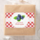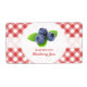 Customizable retro jar labels for homemade blueberry jam, jelly or preserves with fresh blueberries on red and white gingham tablecloth pattern.