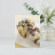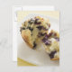 Blueberry muffin split open on a white plate postcard