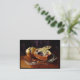 This artist trading card features mouth-watering blueberry muffins arranged on a shiny glass plate on a wooden table. The background is draped in a deep purple fabric.