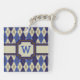 Argyle goes 8-bit with this preppy navy blue, denim blue, and khaki color scheme with a rich brown contrast stitch creating a perfect look for lovers of this classic pattern. Customize the monogram with the appropriate initial for a personalized touch.