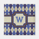 Argyle goes 8-bit with this preppy navy blue, denim blue, and khaki color scheme with a rich brown contrast stitch creating a perfect look for lovers of this classic pattern. Customize the monogram with the appropriate initial for a personalized touch.