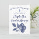 Plain white envelopes are included with paper invitations and will come to fit the invitation size you select. If you don’t need the envelopes, you may choose to not receive them by selecting the dropdown below "Envelopes" and choosing "None." If you’d like to have a design on your envelopes, you can browse all of these available envelopes to find the design that complements your Blueberry Wedding Shower Invitation.