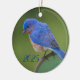 Bluebird 2025 Ornament for your holiday tree. Blue on a green background. Click the Personalize button to make a change. Gift for birdwatcher, birder, or nature lover. This brilliant bluebird will look fantastic on any Christmas Tree.