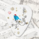 Original art. Bluebird of happiness watching snowflakes and a heart, he is wearing his Santa hat.