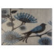 BLUEBIRD PERCHED ON TREE BRANCH WITH BLUE FLOWERS