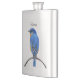 A color pencil drawing of a lovely Bluebird adorns this customizable flask!