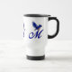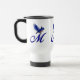 Elegant monogram letter M with a pretty bluebird travel coffee or tea mug. Click on Customize to add text. Great gift idea. This image is available on many products in my gallery.