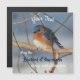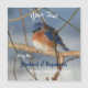 A pretty little bluebird wintering over resting on a branch against a backdrop of snow with the inspirational words May the bluebird of happiness always reside within you. Personalize with your text. Nature photography by Susan.