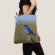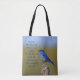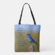 This beautiful bluebird quote tote bag features a stunning photo of a Mountain Bluebird with the inspirational quote, "Be like the bluebird who never is blue, for he knows from his upbringing what singing can do." Add your own custom message to make this design your own. Photography created by award-winning photographer Maria Jeffs.