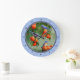 Bluebirds and Peaches Blue Large Clock