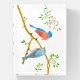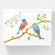 Eastern bluebirds are only found in North America. While the female bird's colors are not as bright as the male's colors, both display fascinating blue and reddish-orange throat and breast with a white underside. The bluebirds on this product were lovingly created by W.B. with Prisma colors.