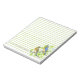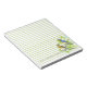 A green lined personalized notepad decorated with male and female bluebirds in a blooming Hawthorn tree in spring sketched with ink and watercolor. Inspired by the state bird and state flower of Missouri. Very nice for reminders or a teacher's gift.