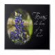 Lovely bluebonnet with black background and white text saying "Texas, the home of my heart." Lovely gift for any Texan! Original photograph by Cherie Haines. Can be added to a gift box as well.