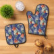 Bluebonnets and Red Roses Pattern Oven Mitt & Pot Holder Set