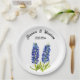 Bluebonnets, blue floral, boho, simple, calligraphy, watercolor painting Wedding paper plates. Summer Texas floral design. Perfect For Wedding party decor. Please personalize it with your names and date.
