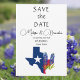 Bluebonnets, watercolor blue floral Wedding save the date. Texas state flowers. Unique, hand painted artwork by artist Monika Howarth. You can personalize it with your details.