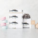 A repeating pattern of bluefin tuna illustrations appear on this wrapping paper. The largest of the tunas, the bluefin can attain weights of nearly 1500 pounds. Found in many of the world's oceans, bluefin tuna are associated with deep sea fishing, commercial fishing, and coastal communities.