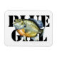 Few things compare to catching a slab panfish like a bluegill. Full color detailed image of a bluegill with the stacked text BLUEGILL in a stencil font in the background.