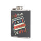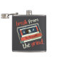 A flask featuring the phrase "Break from the Grind" in bold letters, accompanied by a graphic of a vintage cassette tape with the band name "Blueprints" (or your own custom name can be applied by emailing us at lowtreestudios@gmail.com), symbolizing a nostalgic escape into music and a simpler time.
