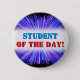 This eyecatching design features a pattern of lines colored various shades of blue or purple that appear to be bursting out from a central point. It also features the message, "STUDENT OF THE DAY!". It could perhaps be used by a teacher or educator to reward or acknowledge a student who has done well.