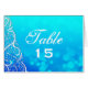 Blues Winter Flourishes Table Number Card. Icy Blues in various tones from light to dark adorn this table number card with fancy flourishes. A great attention piece for our winter wedding tables. See store for complete wedding line in this style, invitations, rsvps, envelopes seals and more!