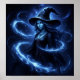 This fantasy poster features a vivid digital painting of a beautiful witch in a magical blue night sky