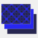 Gift Giving Package Wrapping Paper set of 3 sheets printed with Bluesy Blue Gradient Star Bow abstract repeating pattern design illustration by TheFabricSeal at Zazzle.com #Zazzle Made https://www.zazzle.com/store/thefabricseal. Drawing design concept inspired by octagons, eight point stars and gift packaging ribbon bow shapes along with mechanical drawing and painting with gradient ombre light to dark color backgrounds.