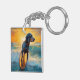 Bluetick Coonhound Beach Surfing Painting Keychain