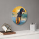 Bluetick Coonhound Beach Surfing Painting Large Clock