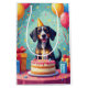 A cheerful birthday scene featuring a Bluetick Coonhound enjoying a festive celebration surrounded by colorful balloons, presents, and a bright birthday cake. The playful party setting and lively colors create a joyful and heartwarming design full of celebration energy.