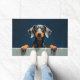 The deep navy blue background enhances the contrast and gives a bold, elegant appearance—perfect for stylish entryways. With extra space at the top and bottom, this design is ideal for personalization—add names, welcome messages, or custom text to create a unique dog-themed doormat or thoughtful gift.