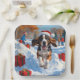 A joyful Bluetick Coonhound dashes through fresh winter snow, playfully wearing a festive red Christmas hat. This seasonal scene captures the spirit of the holidays with the energy and charm of a beloved hound in a snowy landscape. Perfect for adding a touch of warmth and holiday cheer to the season, this design celebrates both the beauty of winter and the love of dogs.