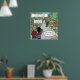 This humorous poster features a couple hiking together with a friend, who is very excited to show them something really cool up ahead. The hikers are taken back by his enthusiasm to the point of wondering if he’s bluffing. Then they realize that all signs indeed point out that he is bluffing…and it makes sense why!