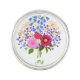 A label pin with a beautiful flower bouquet image. The background, image and text can be personalized. Original artwork by W.B.