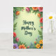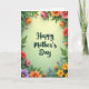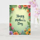 This card features “Happy Mother’s Day” centered in dark green lettering, standing out against a pale green background. The words sit in the middle like a gentle focal point, with a softly brightened area behind them that feels like a warm glow ❤️. Around the edges, a blurred border of leafy greenery wraps the message the way an embrace might, giving the scene a close, caring mood. Hints of flowers peek through the soft focus, suggesting tender attention and closeness rather than sharp detail. You can spot touches of pink petals, orange blossoms, deep red accents, sunny yellow blooms, and small purple notes that add a garden-fresh feel 🌼. The text remains clear and easy to read while the surrounding plants stay dreamy and out of focus, keeping your eyes on the center. The overall layout is simple: centered greeting text with a full-frame botanical frame that fades gently toward the corners. The border shows green leaves and blurred blossoms in pink, orange, red, yellow, and purple around all four sides.