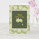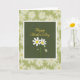 Designed with a deep olive-green center panel, the card features a slim green stem rising like a gentle gesture of care between close friends ❤️. Two full white flowers with sunny yellow centers face outward, while a smaller bloom and two buds lean nearby, suggesting a quiet closeness and growing affection. Near the top of the center panel, a short Mother’s Day message appears in gold lettering, standing out softly against the dark green. A thin white border frames this central artwork and separates it from the outer area. The surrounding background shifts to a muted sage green, creating a calmer setting that feels like a soft garden hush. Across that outer area, pale white flower shapes repeat in a slightly blurred pattern, adding depth without pulling attention from the main blossoms 🌼. The overall palette stays in earthy greens and whites with touches of gold, keeping the look gentle and calm. In the background, the repeated white floral shapes fade like a light mist over sage green.