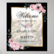 Welcome your guests to your elegant wedding party with this floral photo welcome sign. Matching items available to complement this blush and black floral wedding welcome sign featuring blush pink flowers and greenery surrounding the wedding details and a photo inside a gold frame with a black background. Easily personalize this floral sign with your wedding details.