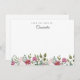 A pretty flat note card featuring a bottom border of blush pink and burgundy flowers and green leaves. Personalize with your name in script font.