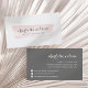 Elegant blush and gray business cards feature your name or business name on a blush pink watercolor swash background, with your full contact details on the back in white on gray.