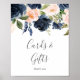 This blush and navy flowers white cards and gifts sign is perfect for a floral wedding or bridal shower. The classic and elegant design features modern watercolor navy blue and blush pink flowers. The line of text at the bottom of the sign can be personalized with the date, the names of the bride and groom, or a short message like "Thank you". This sign can be used for a wedding or any event or party.