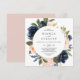 Blush and Navy Flowers White Casual Square Wedding Invitation