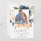 This blush and navy flowers white photo save the date is perfect for a floral wedding. The classic and elegant design features modern watercolor navy blue and blush pink flowers. Personalize with your engagement picture, names, wedding date and wedding website address.