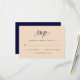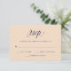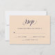 These simple and minimal wedding RSVP cards feature navy blue calligraphy on a blush pink background.