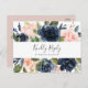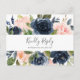 This blush and navy white menu choice RSVP postcard is perfect for a floral wedding. The classic and elegant design features modern watercolor navy blue and blush pink flowers. This wedding response postcard conveniently asks guests what meal they would like at your reception.