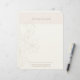 These minimal and chic letterheads feature a set of contemporary fonts in a light taupe color and delicate floral detail, against a blush pink and white background.