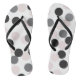 Modern and whimsical flip flops featuring blush and black large dots pattern. Fun and unique flip flops that will be a perfect accent to any outfit. Other colors are available.