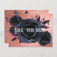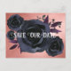 Darkly beautiful black watercolor roses with purple foliage decorate this elegant shaded Blush modern gothic Save our Date card. The reverse side is adorned with a central black rose as a frame to your couple photo. Step into a realm where Gothic elements entwine with modern aesthetics in our Black Gothic wedding Save our Date. A celebration of love and darkness awaits, where spirits dance under the moonlight and love's spell knows no bounds.