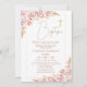Blush Boho Floral Gold Cross Baptism Invitation