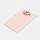 Floral postit notes with your initials in modern white letters atop a bouquet of colorful flowers and greenery against a blush pink background.