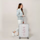 Make a statement with custom designed luggage. You'll never confuse your bags with every other boring suitcase again. This pretty feminine design features a minimalist botanical leaf pattern in blush pink and white. Personalize it with your 3 letter monogram initials in a modern font or use the design tools to choose any fonts and colors you like. You can upload your own photos and add more text to create a totally unique design. An awesome holiday gift idea for your favorite frequent flyer!